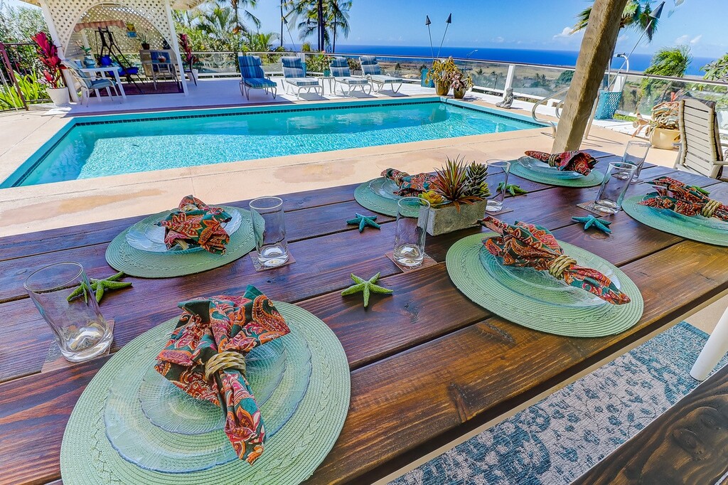 Experience the Big Island from the comfort of this charming Mediterranean-style villa with gorgeous unobstructed panoramic ocean views and memorable sunsets from your own pool, living room, lanai, gazebo, private pool deck, even while you're cooking! Resort living at the Villa is perfect for fantastic entertaining or relaxing. Perched high above the crowd taking advantage of unobstructed views the Villa is a private sanctuary with the amenities you need for a special Hawaiian vacation. "The Heart between Kailua-Kona & The Kohala Coast" where you can enjoy strolling along Kona's famous Ali'i Drive and the Kohala Coast (home to one of Conde Nast Travelers top ten beaches on the globe). Hualalai Villa is located approximately 1 MI. from Kona International Airport. The Villa is approximately 10 minutes from Kailua-Kona Village and 10 minutes from one of many fabulous beaches. It's the best of both worlds!
