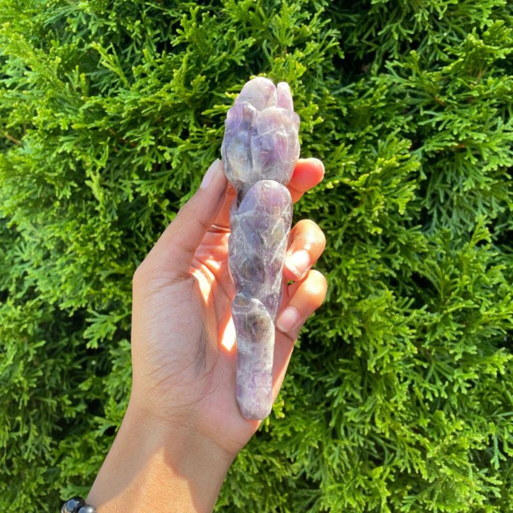 Chevron Amethyst: Chevron amethyst enhances intuition by stimulating the third eye and crown chakras, linked to spiritual insight and higher consciousness. It helps individuals connect with inner wisdom and develop psychic abilities. The crystal offers protection and purification, combining amethyst and white quartz to amplify the shielding effect against negative energies and create a barrier against harmful influences.