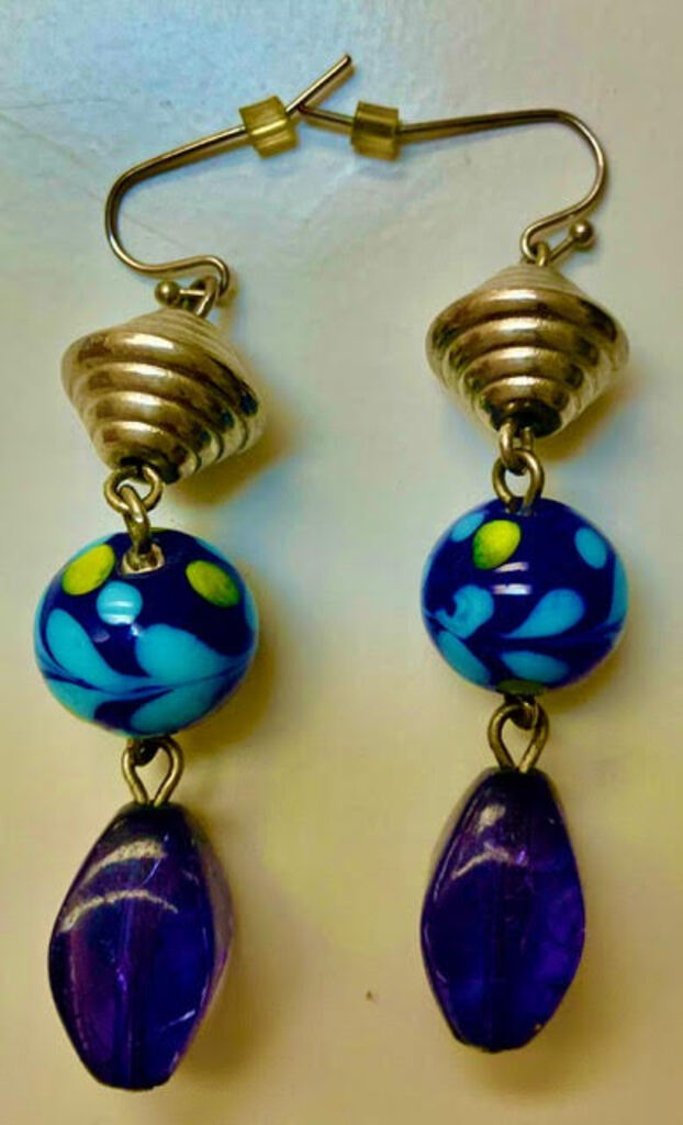 New Dangling Blue Beaded Pierced Earrings. Have great fun with these! Measures 2 1/2” Long.