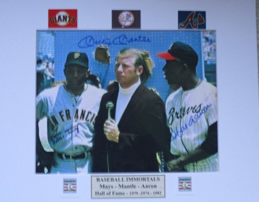 Mickey Mantle, Willie Mays & Hank Aaron triple autographed