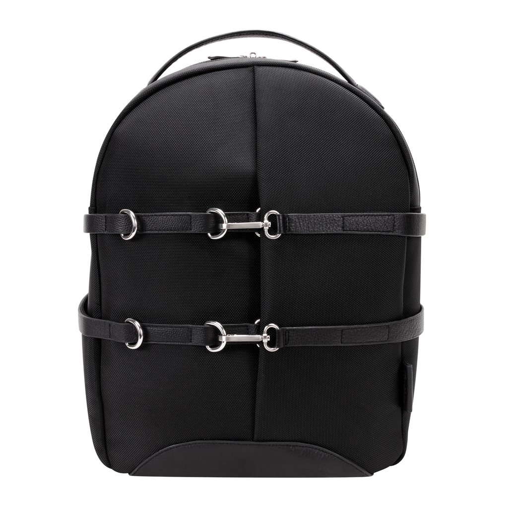 Create the success story of your life with this stylish elegant contrasting leather accents 15” nylon Laptop and Tablet Backpack. Decorative dual front buckles and top handle bring out the forward-thinking and focused personality in you. Store your drinks, beverages, and snacks in the collapsible easy access mesh side pocket. Organize your papers and files inside our fully lined interior with leather trim and silver hardware kept safe with a dual lockable zipper. 15” padded built in laptop sleeve and padded tablet pocket stores and keeps your important devices safe. Keep your business accessories easily accessible with an interior organizer. Rear exterior features ultra-padded air mesh with air flow system (AFS) and padded backpack straps or attach it to your luggage with the piggyback strap.
