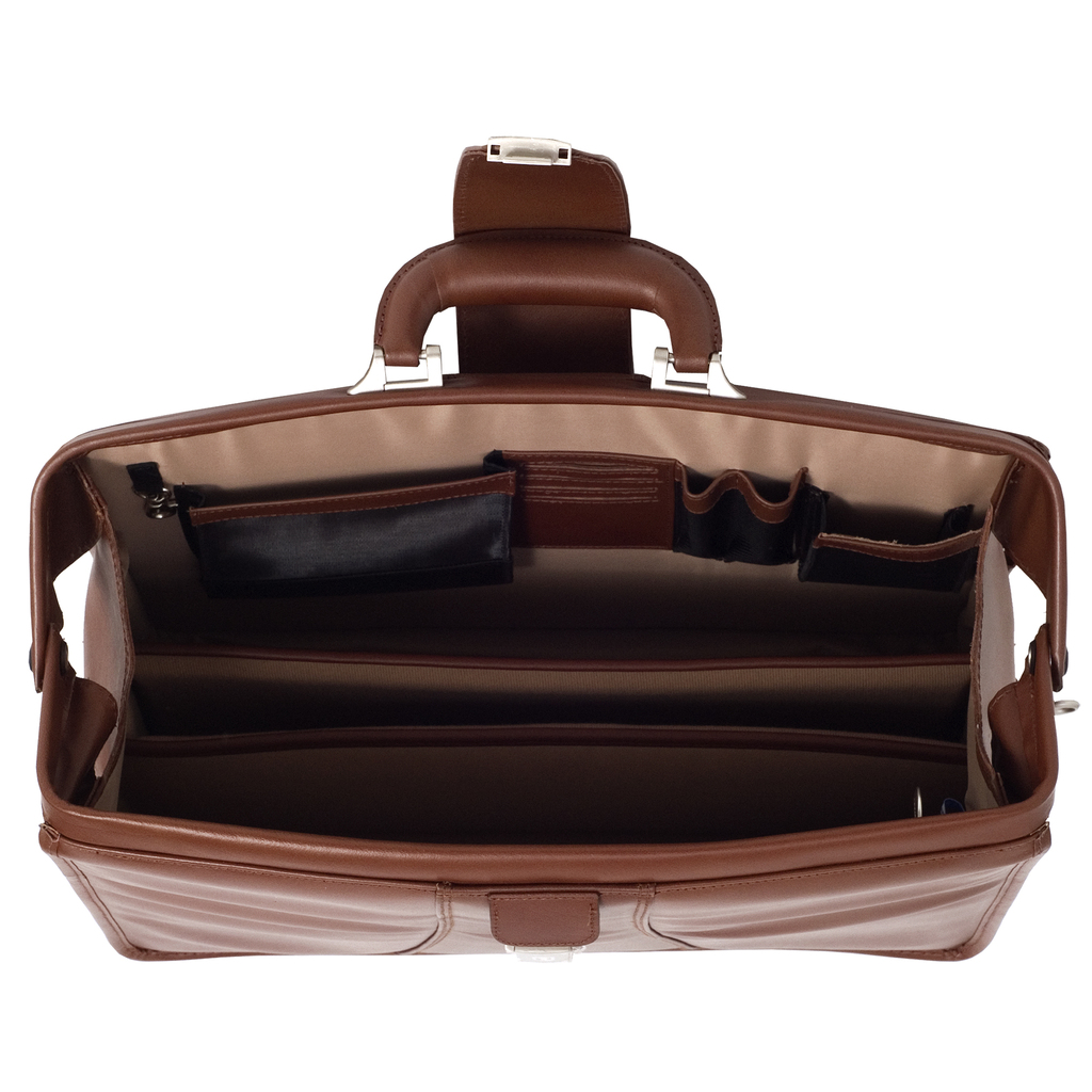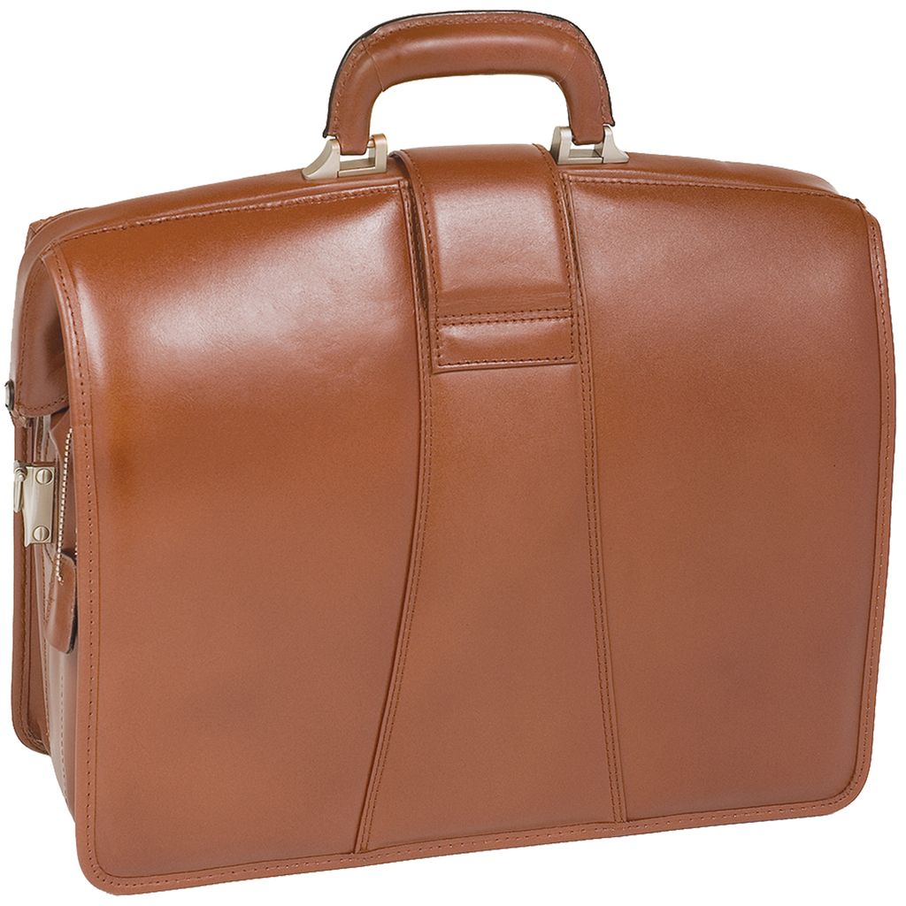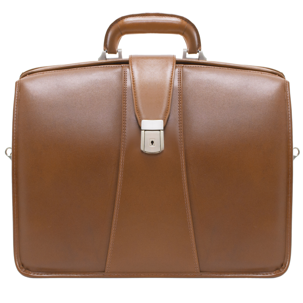 Elegant briefcase design meets modern functionality with secure key lock. Organizer with storage space for media devices, cell phone, business cards and pens. 3-section gusset construction with padded middle section that protects laptops up to 17" in size and two divider sections for documents. Removable, adjustable, non-slip, shock absorbing, comfortable shoulder strap that helps alleviate body strain included.