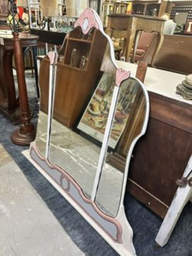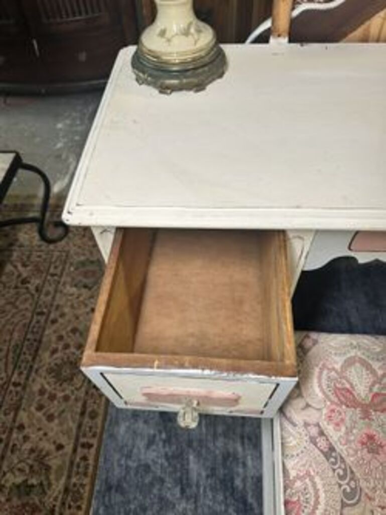 Shabby Chic vintage painted vanity with large mirror and stool included in price Measuring 46” x 19” x 29”