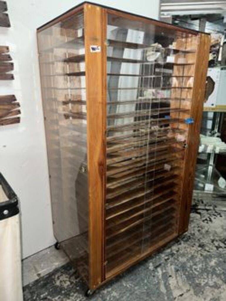 Four sided display rack perfect for smaller products. Varying sizes of racks, mirrored/particle board backing