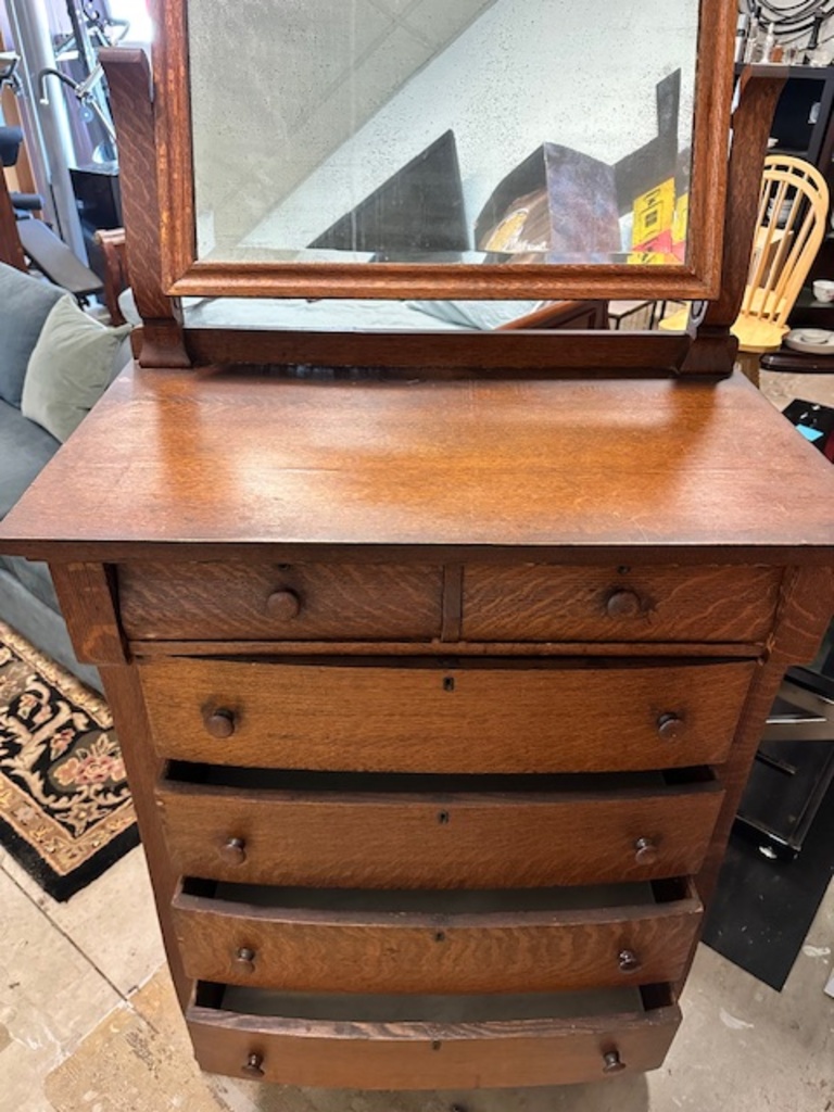 This chest of drawers with rotating mirror is the perfect addition to any rustic bedroom.