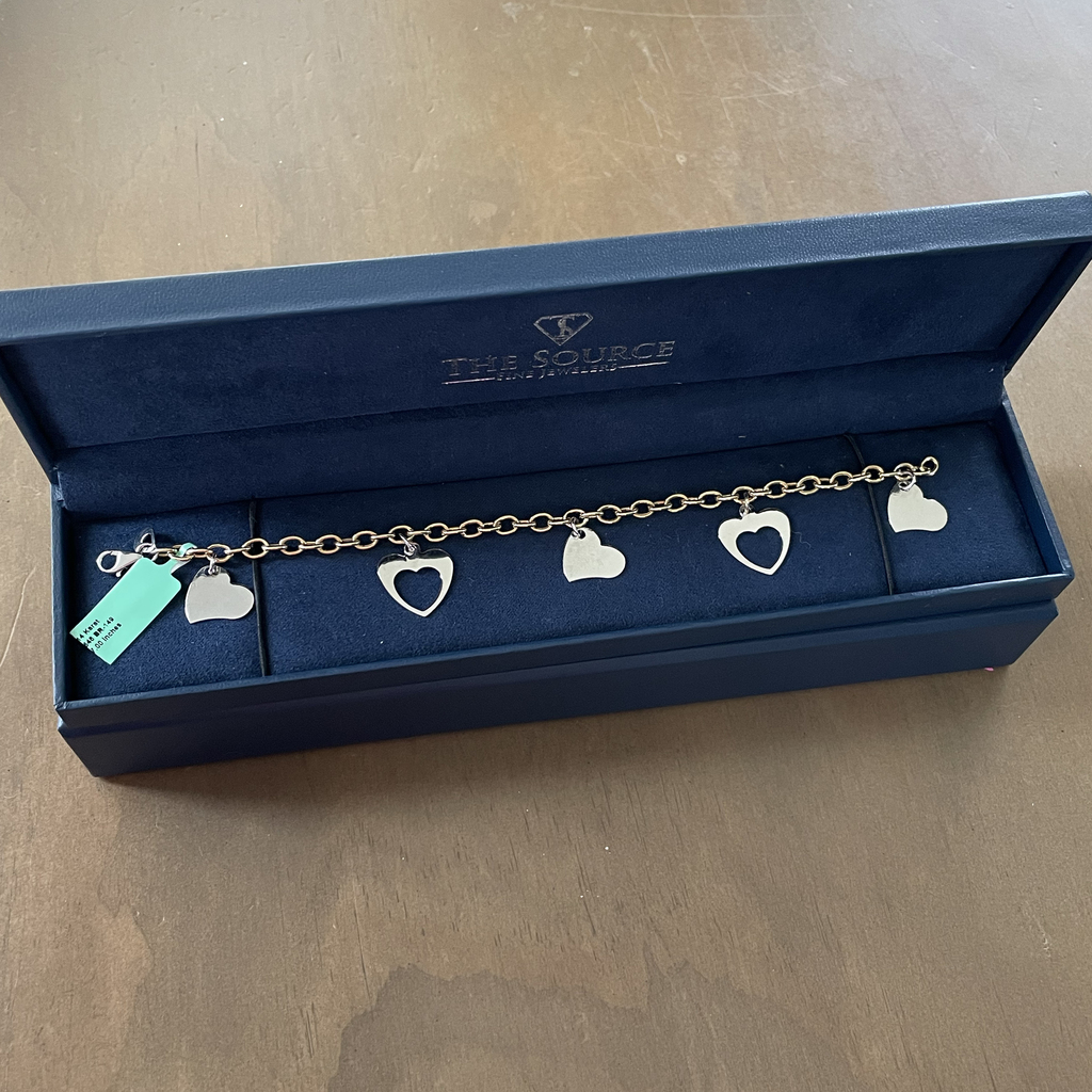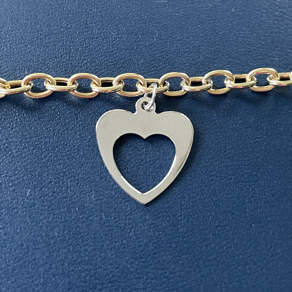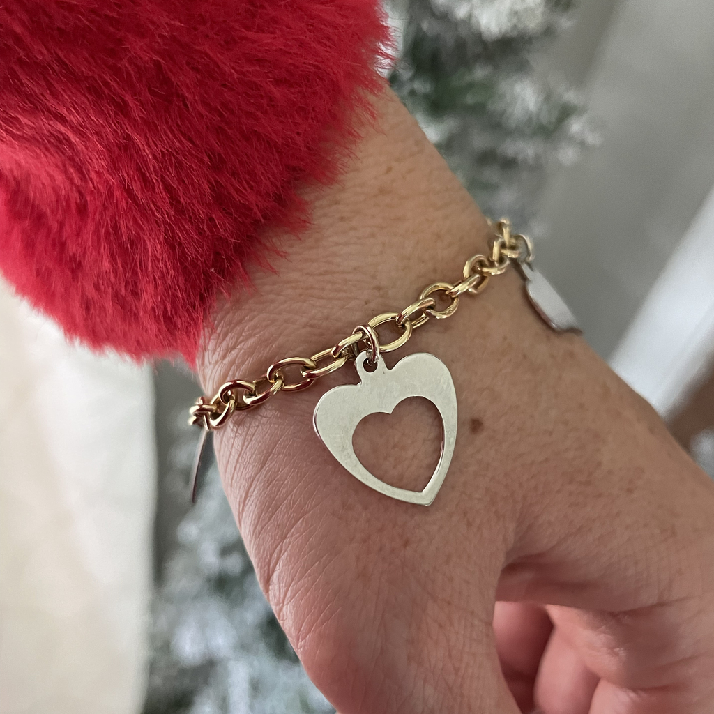 14K Yellow Gold Fancy Link Heart Dangle Bracelet. #440-26780