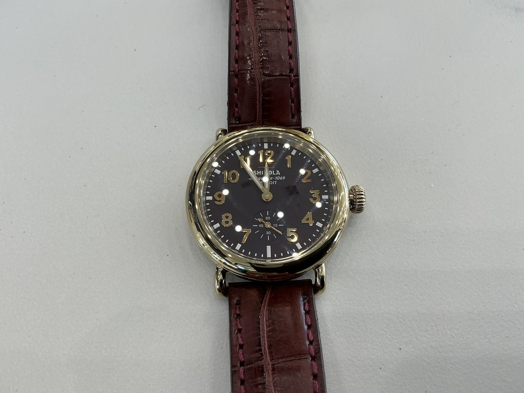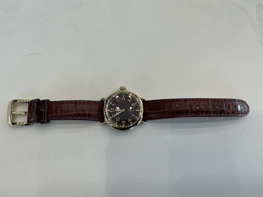 Burgundy dial with gold plated case on a leather strap 500-190-26736