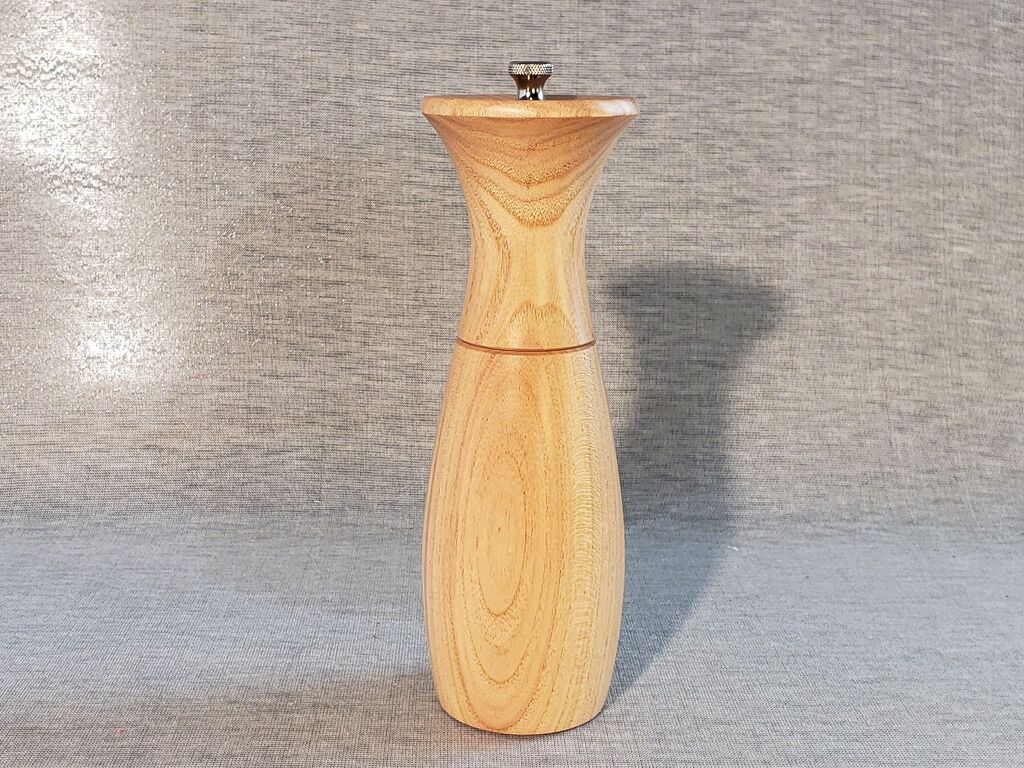This wooden peppermill was made from an urban Colorado Honey Locust tree. Honey Locust is a hard, dense wood and has an orange tint. I love working with it because it sands and finishes well, and you can't beat the orange color! Clean lines, flowing curves, flawless finish and function. The pictures show the mill from all 4 sides.