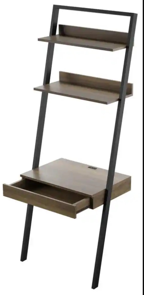 Leaner Desk Ladder With Power Walnut 30x20x80