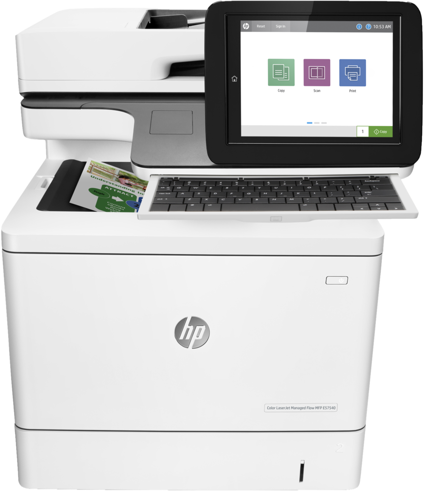Qty 5 Print speeds 40 PPM, Fax capability4, 100-sheet ADF with single-pass, two-sided scanning, 100-sheet multipurpose tray 1, 550-sheet tray 2 HIP,2 easy-access USB3, HP Secure high performance hard disk drive Convenience stapler, Scan to Microsoft® SharePoint® , HP EveryPage with ultrasonic detection1, Advanced workflow features including a pull-out keyboard1 ,