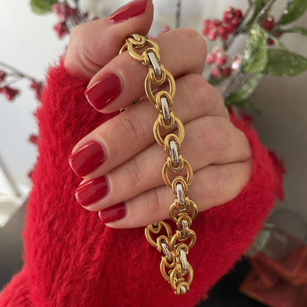 14K Gold Two Tone Ladies Link Bracelet