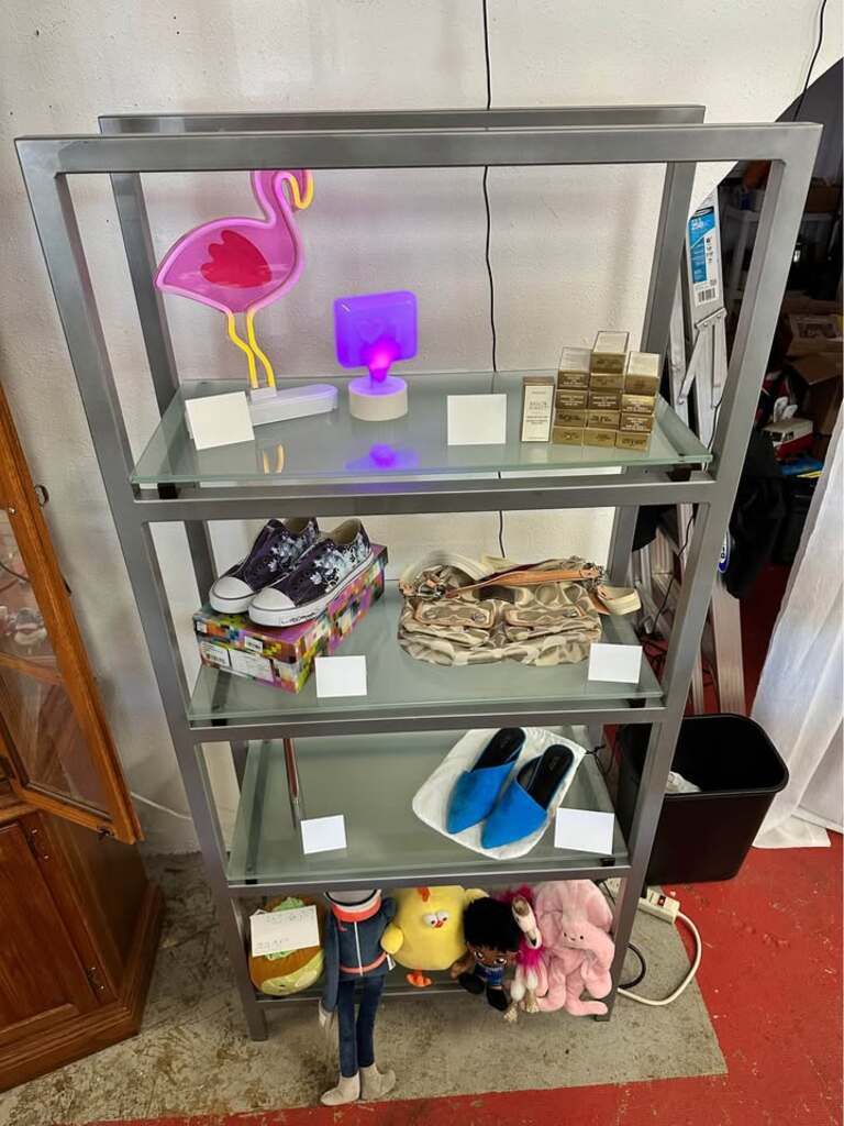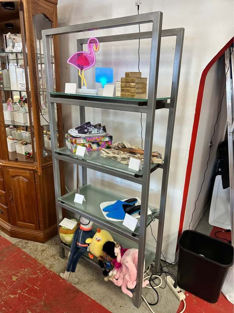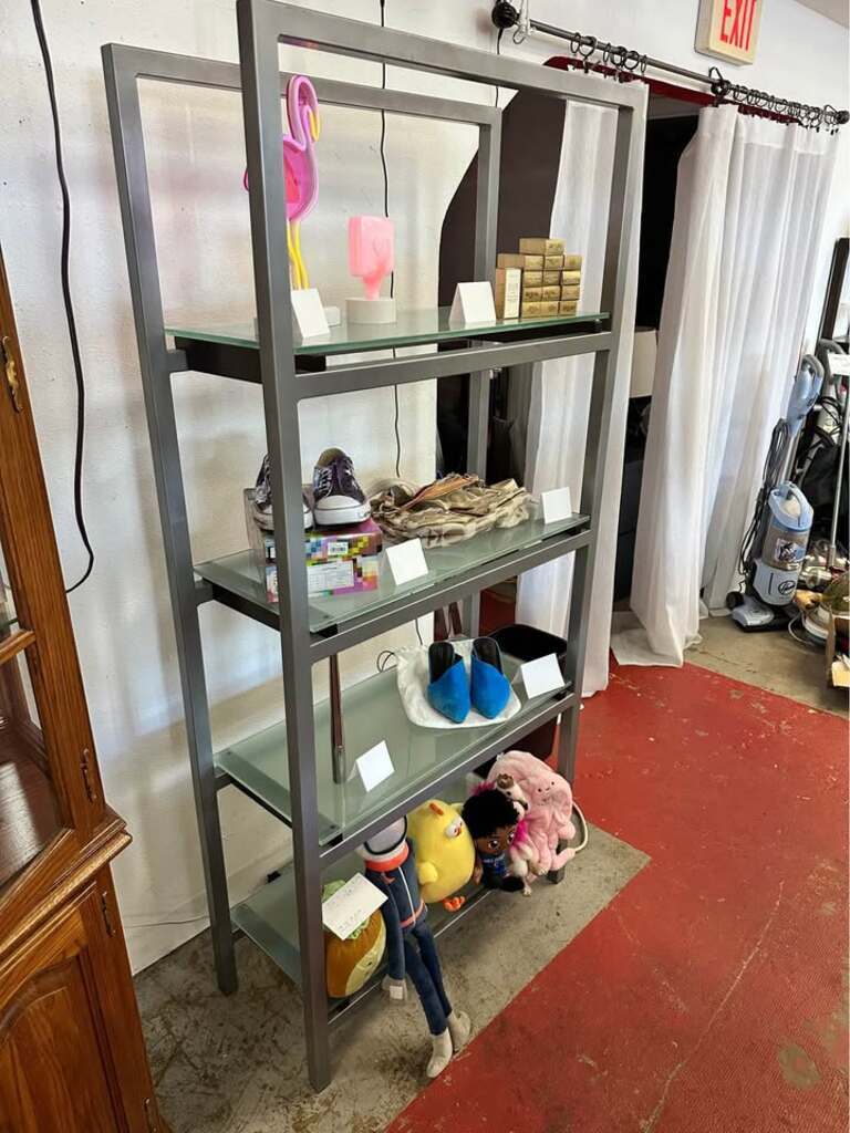 Beautiful modern metal and glass display shelf. Display your precious finds or fill it up with books. Whatever you use it for, it’s beautiful.