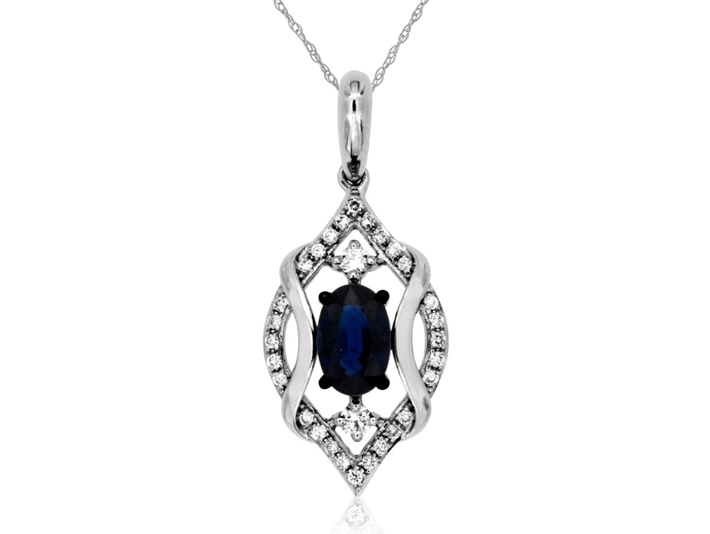 14K White Gold Sapphire and Diamond Pendant with Complimentary Presentation Chain SKU# 230-429