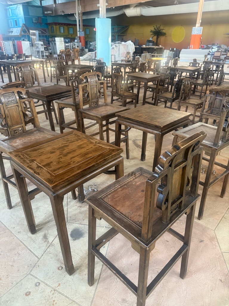 • 20 Small Square Ming Tables – carved aprons, heavy solid tops