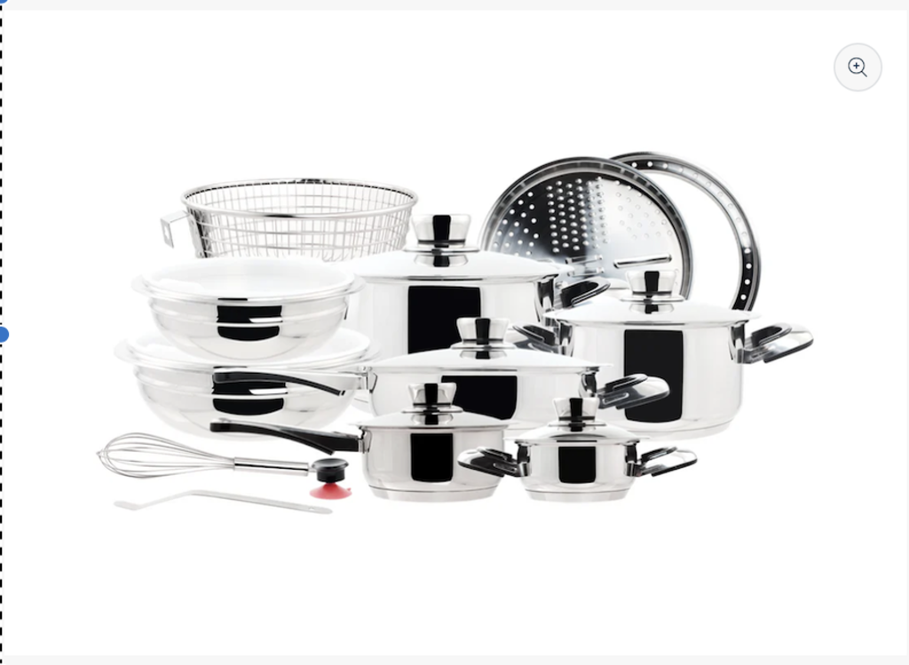 STAINLESS STEEL, A beautiful set, great gift or made to fit in your kitchen. Drip-less pouring edge. Vapor seal. Nutri-thermic compact base force of 1.2 tons. Distributes energy extremely quick. Stay cool handles. Temperature knobs. Stack cooking. Much more. Easy Clean. Lifetime Guaranteed. 24 element Stainless Steel. Set Includes: