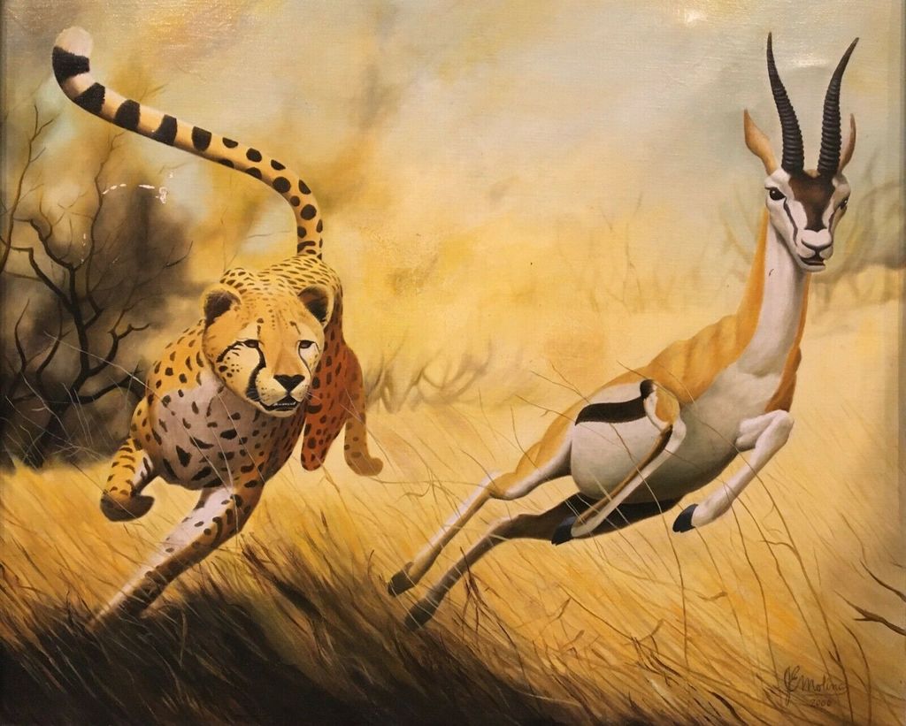 This National Geographic style print is an oil painting on canvas. Has a small scratch. Measures 25 X 28". Originated in Cuba.