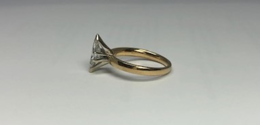 14 Karat Gold lady's solitaire ring with a bright polish finish. Size 7 1/2. Marquise cut dimaond 1.06 ct. Recent GIA appraisal provided