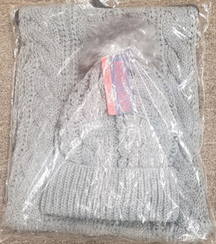 Cable knit fabric. This two piece scarf and hat set is comfortable, cozy, popular and well-made. Ideal for casual wear or for that perfect gift. Made in China. Original Wonderful clothing accessory. FITTING GUIDE: One size fits most.