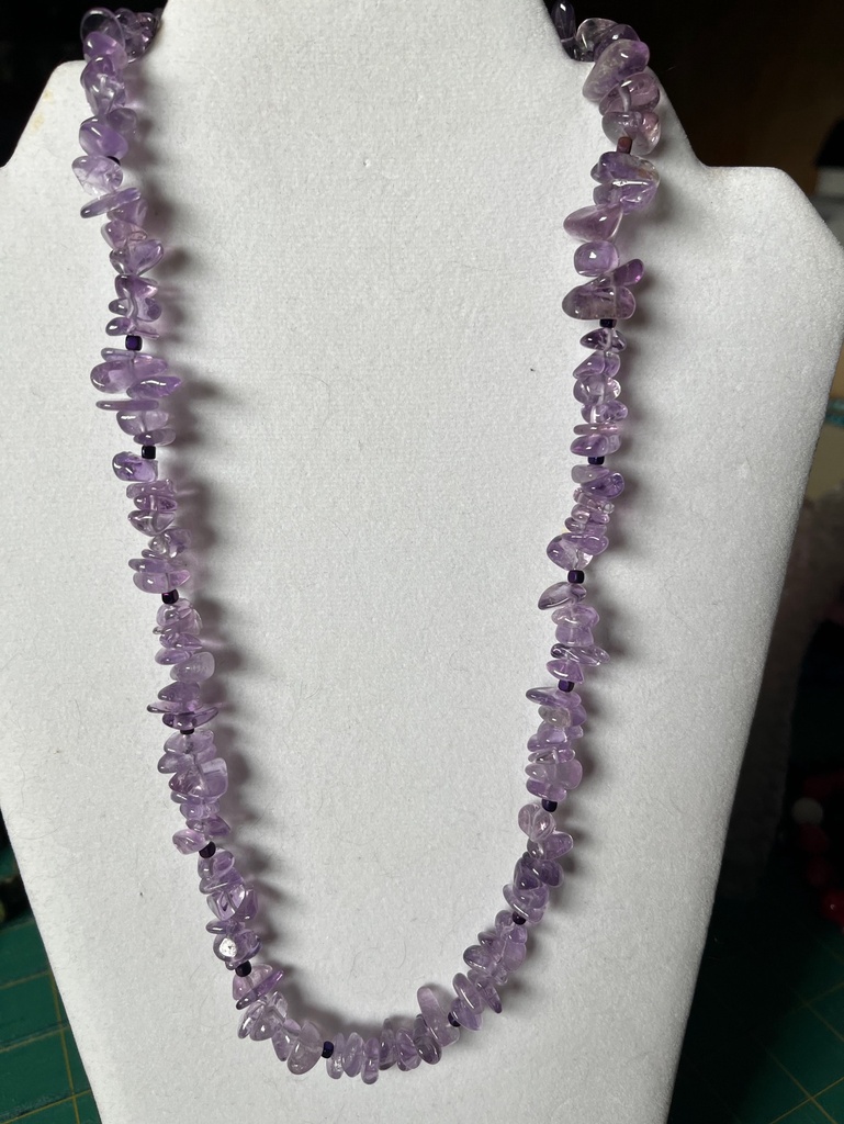 "Passionate purple" Amethyst chips and 2mm cubes. Necklace 22”.