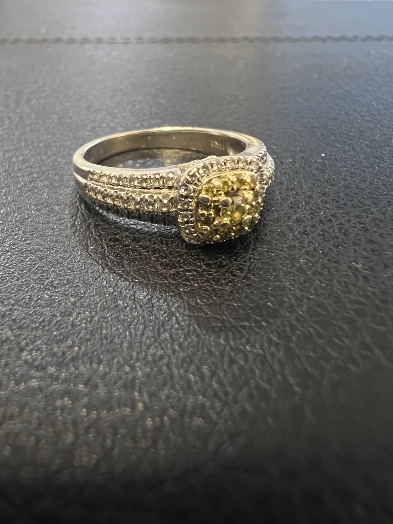 White & Fancy Yellow Diamond 14 Kt White Gold 3 Square Ring