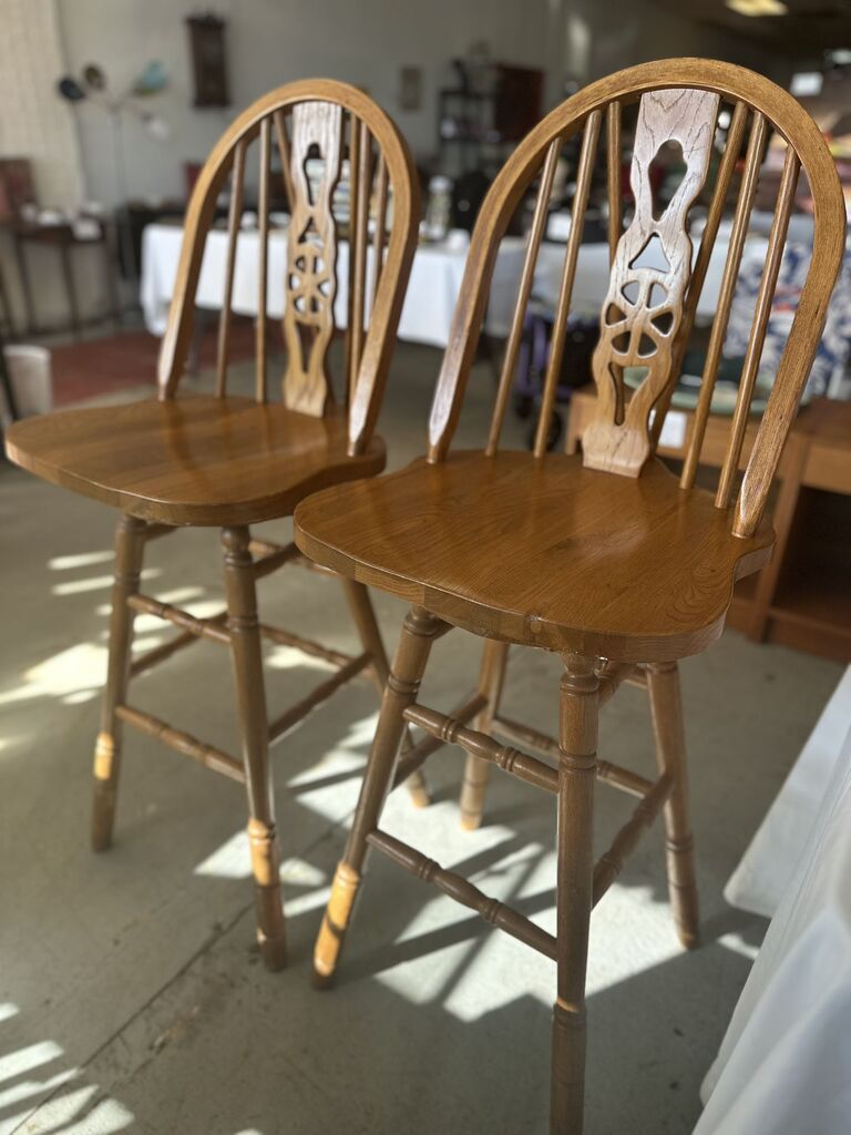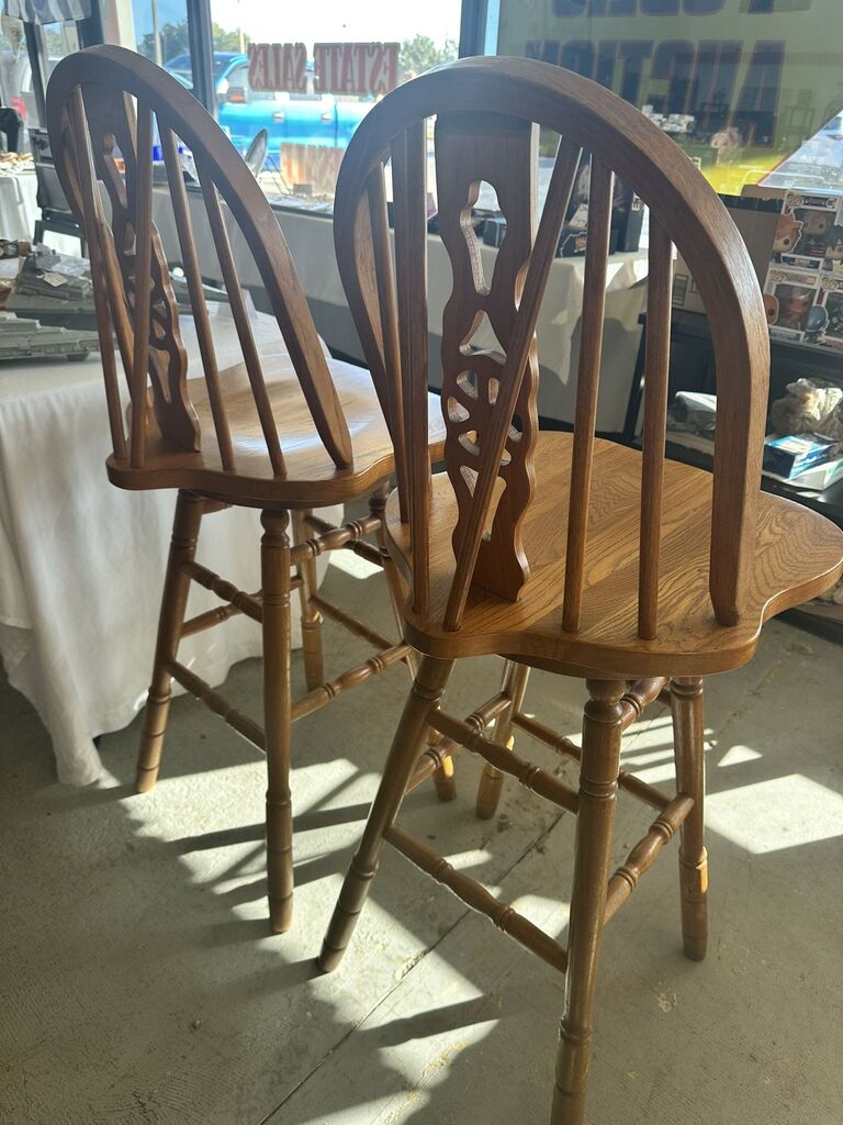 Pair of adorable country barstools- all wood, 30 inch seat. Prices is for the pair.