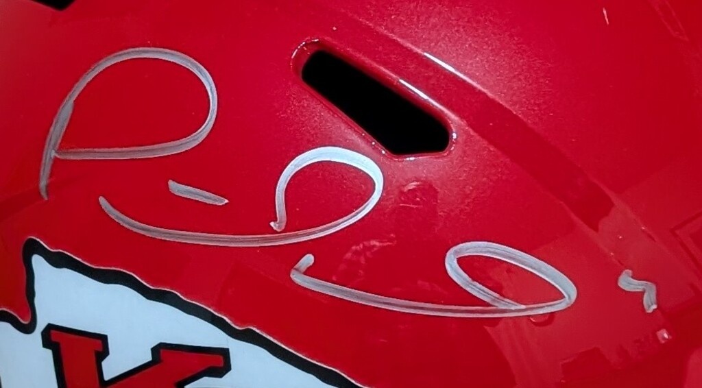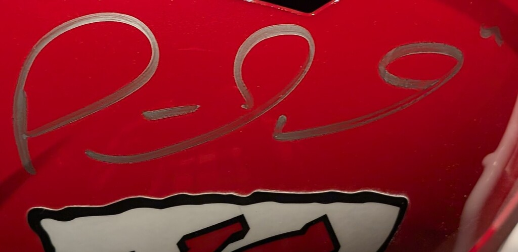 This helmet was signed by Patrick Mahomes with no smears or smudges.