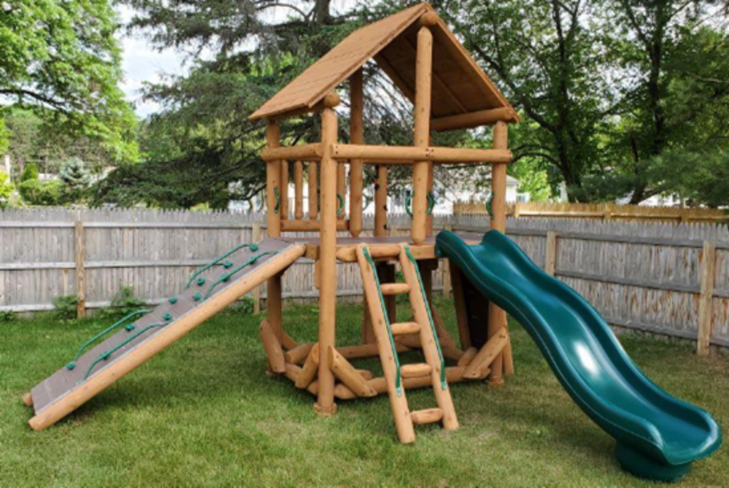 Cedar log playgrounds with composite decking floors and accessories to customize every playground. Numerous sizes and styles available. Cash delivery charges on long distance orders.