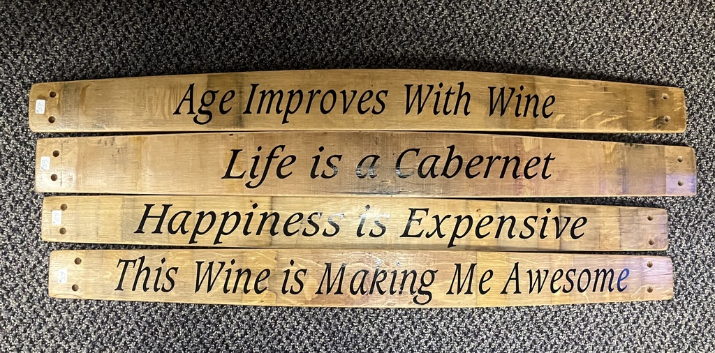 Set a tone of fun and whimsy in your bar or wine cellar! Our Barrel Stave Cellar Sign is handcrafted by the artisans at Alpine Wine Design from an upcycled Napa Valley wine barrel stave, used in production for two to five years. Each oak stave curves slightly away from the wall and retains the authentic markings from the barrel bands and wine. Hanging Hardware is included. We have many other sayings available, just search our shop for signs!