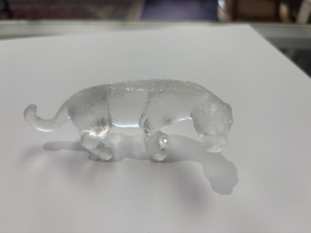 Intricately handcarved tiger in natural clear quartz. Powerful movement and expression! 4.5”x 2