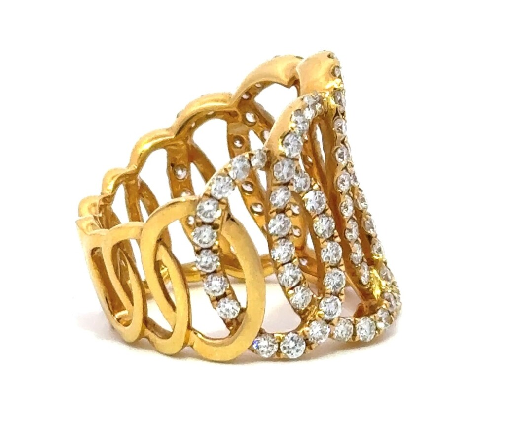 14K Yellow Gold Tapering Oval Loops Ring Total Weights 2.20 Carats