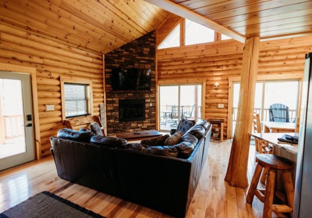 Nestled across 100 scenic acres, the property features more than 20 unique lodging options, including cozy studio cabins, modern village cabins, and expansive lodges with amenities like private hot tubs, full kitchens, recreation spaces, porches, fire pits, and wooded or ridge-top views. Many cabins offer covered outdoor spaces, walk-out patios, and inviting interiors ideal for relaxing after a day of exploring.