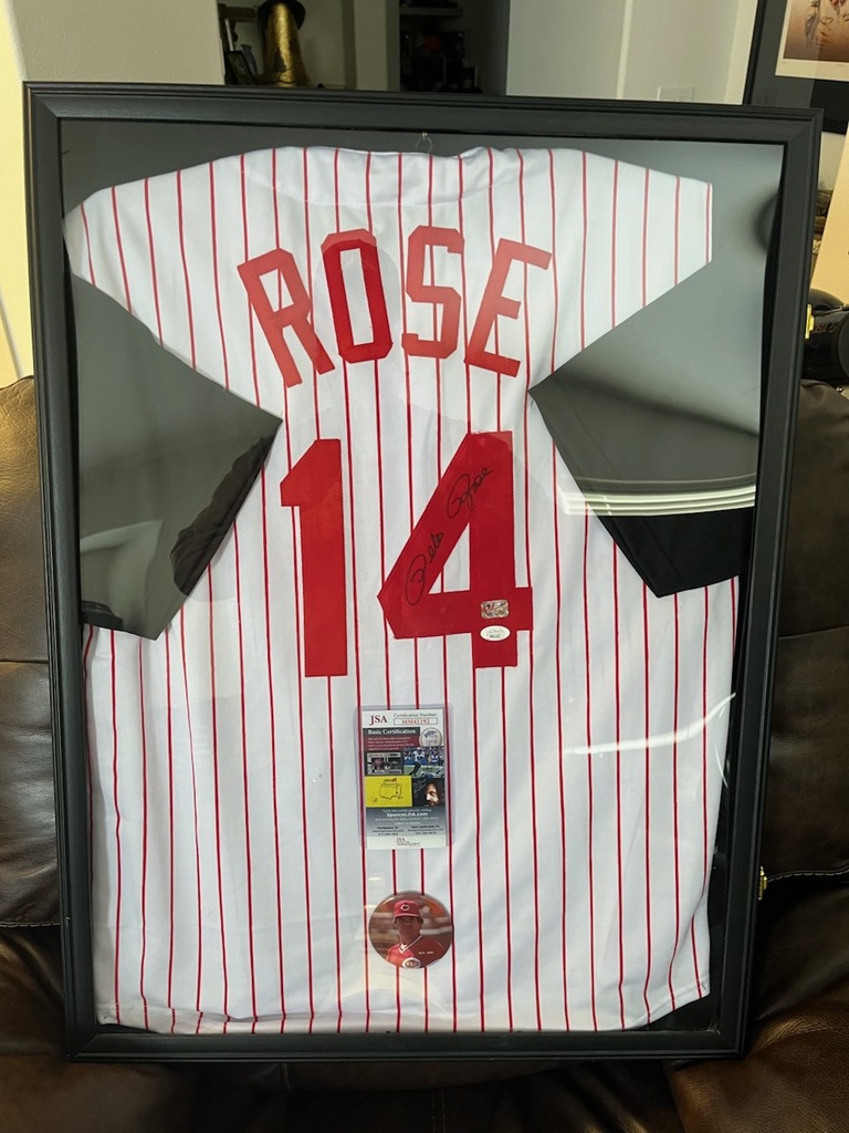Framed Autographed Pete Rose Jersey – COA Included