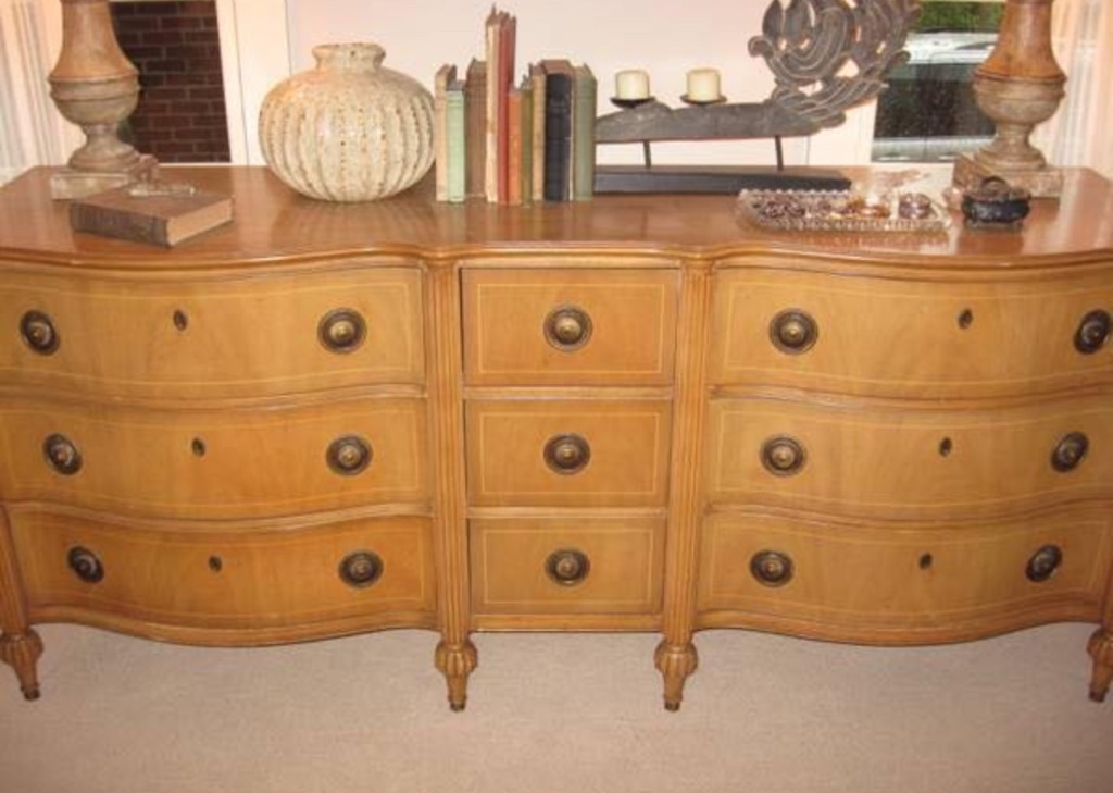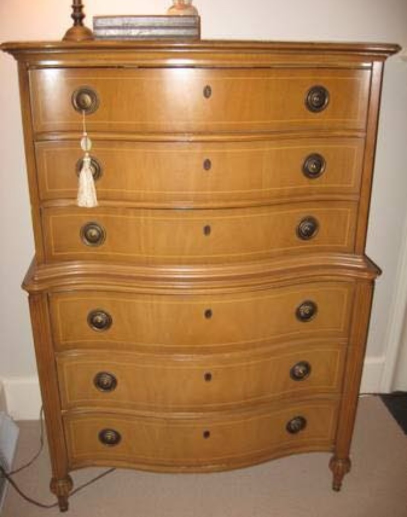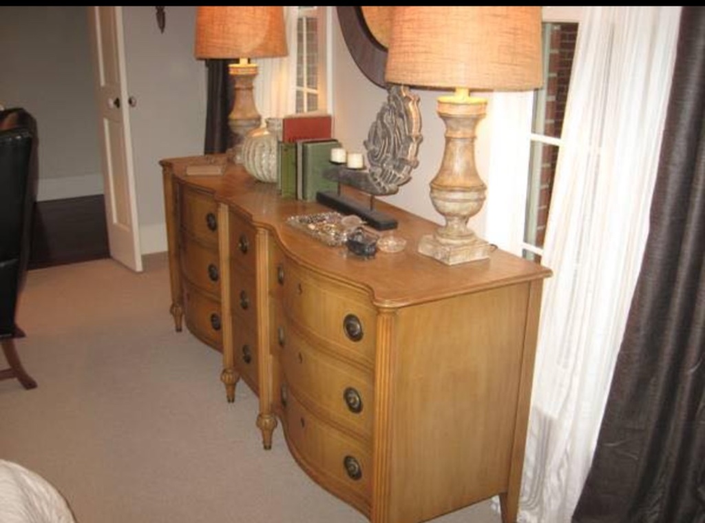 Beautiful and sturdy 2pc dresser set, initially purchased with the idea of turning the long dresser into a custom vanity, but we ended up going in another direction- used but nice condition, there are a few areas of damage, mostly on the high boy. YOU MUST MOVE YOURSELF, its up a flight of stairs on the second floor