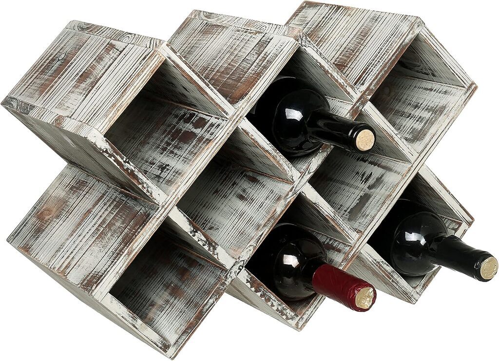Rustic Torched Wood Wine Rack – 8-Bottle Countertop