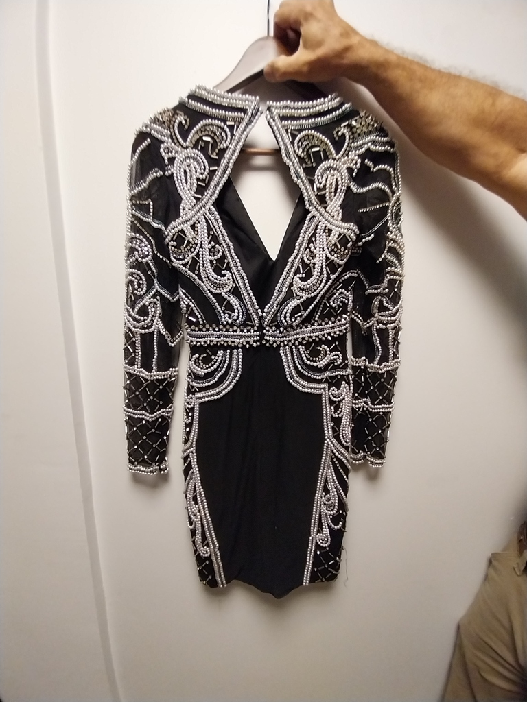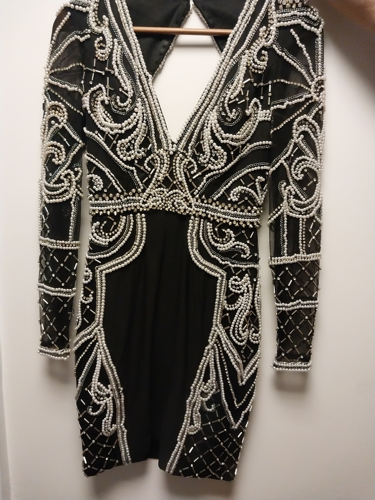 Jovani women's black cocktail dress; very heavy beaded with pearls and rhinestones. Size 2.