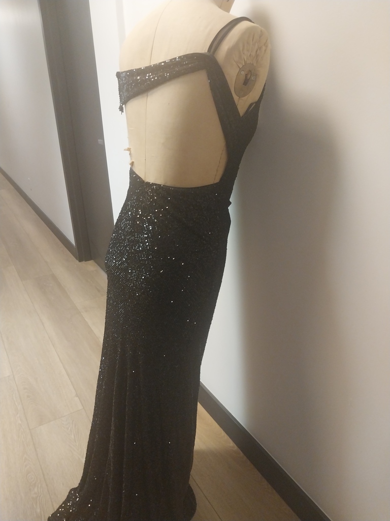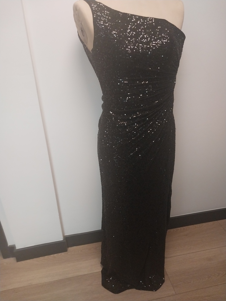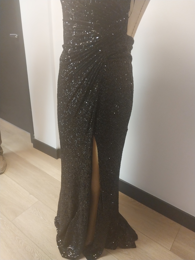 Women's black sequinned gown size 8 slit on side low back.