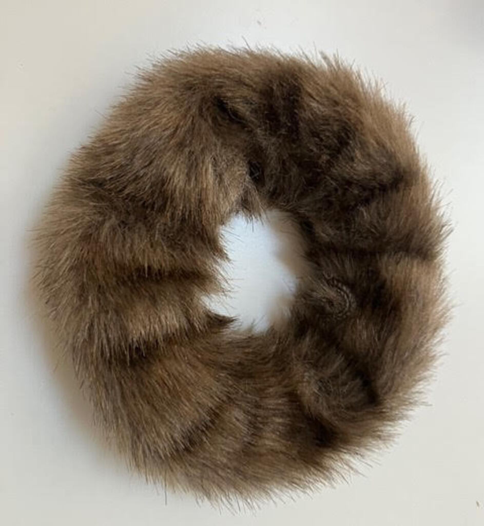 Faux Mink Hair Tie. Stretches to fix all hair styles. Measures 4” in Diameter.
