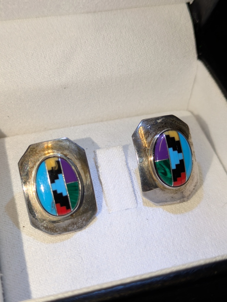 Southwestern Sterling Silver Micro Mosaic earrings