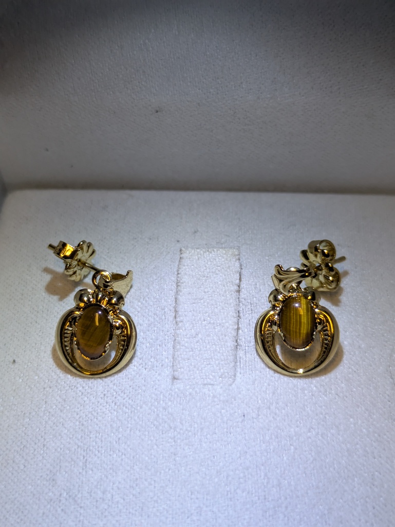 A beautiful pair of Vintage Tigers Eye Earrings in 14K Yellow Gold .