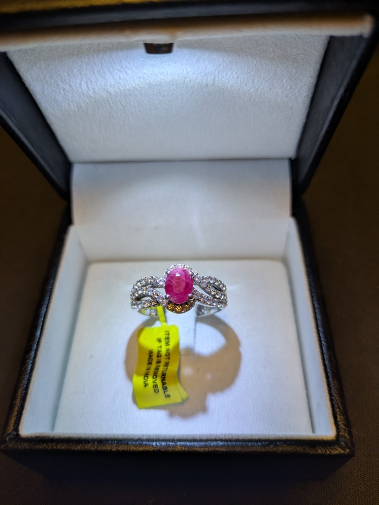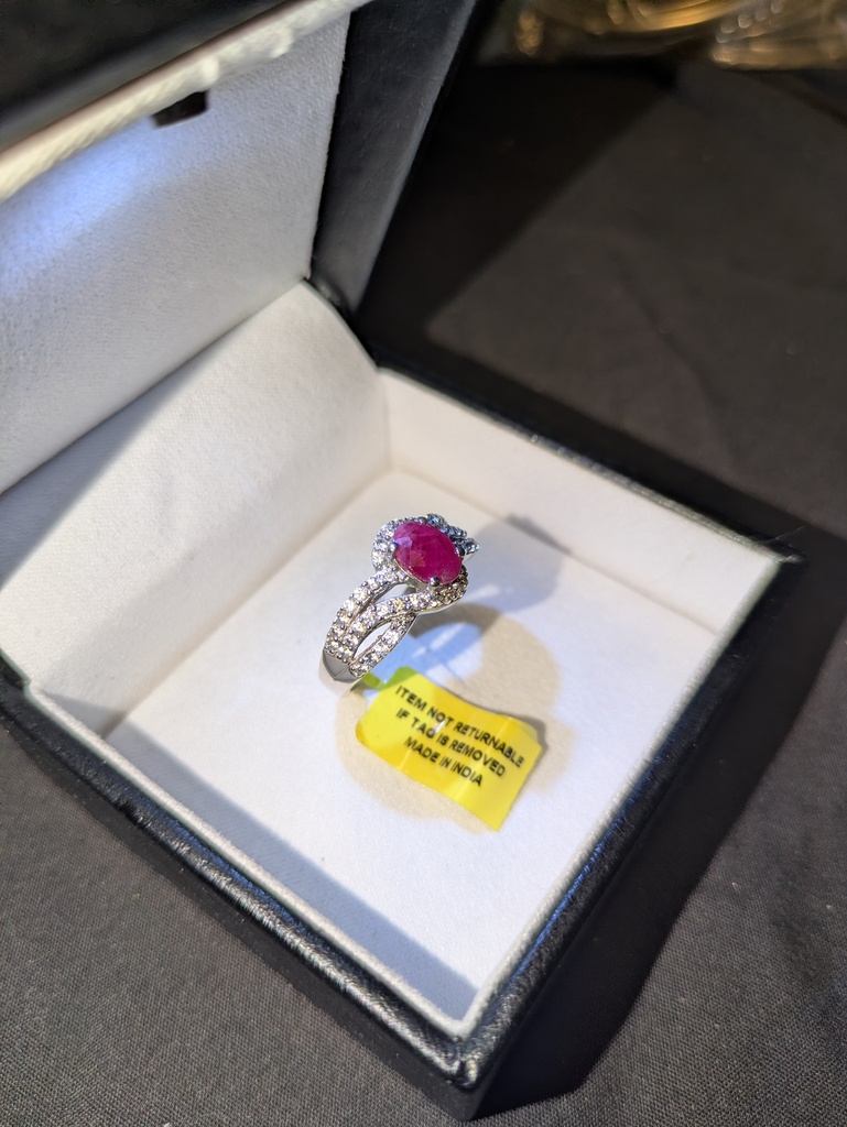 Sterling Silver ring, w/ Ruby & single cut Diamonds, sz 9