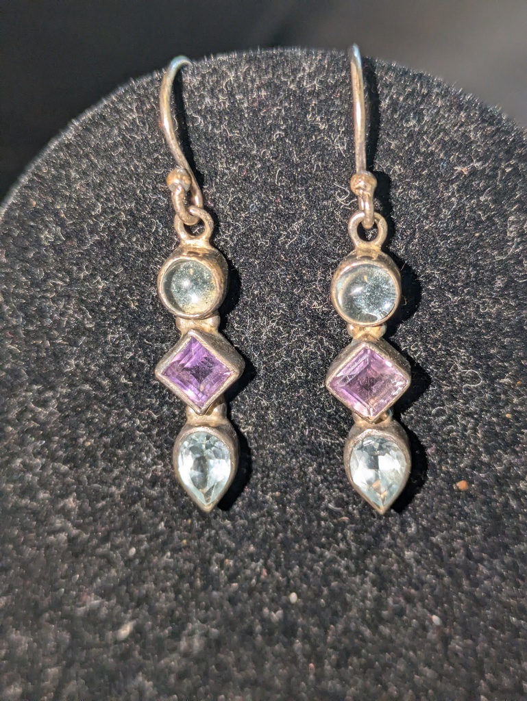 Sterling Silver earrings w/ Purple & Green stones