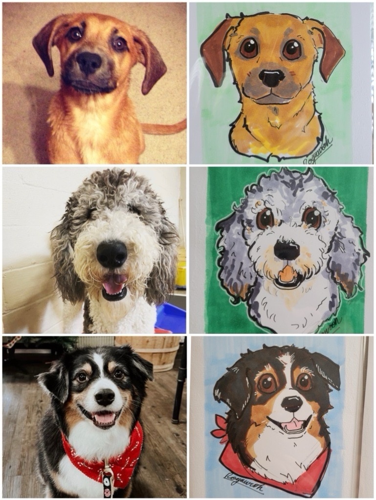 Have your pet memorialized in a fun modern style - hand-drawn by siri petersen in 5”x7” size from photograph of your pet. Shipped for $2 extra. $25 per pet portrait.
