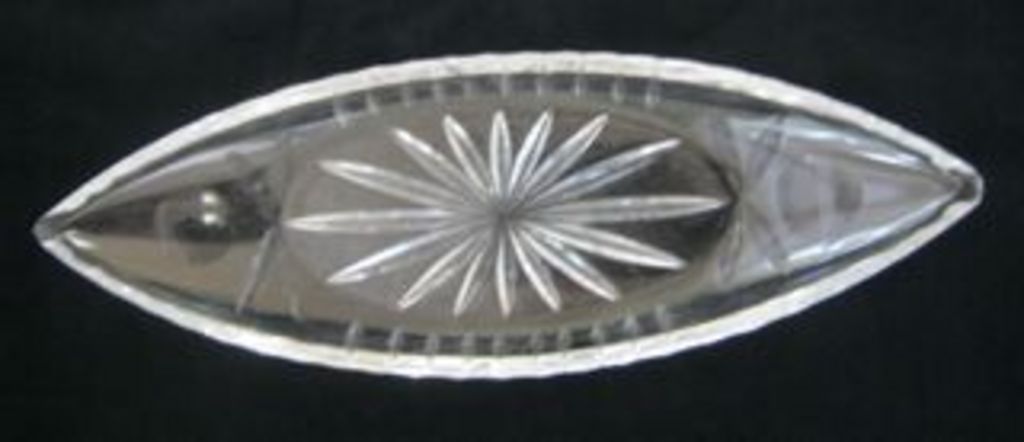 Believed to be American Fostoria. Beautiful cut crystal with star burst in middle. Measures 11"L by 4"W by 3/4"H. Perfect Condition. -- ALL SALES FINAL!