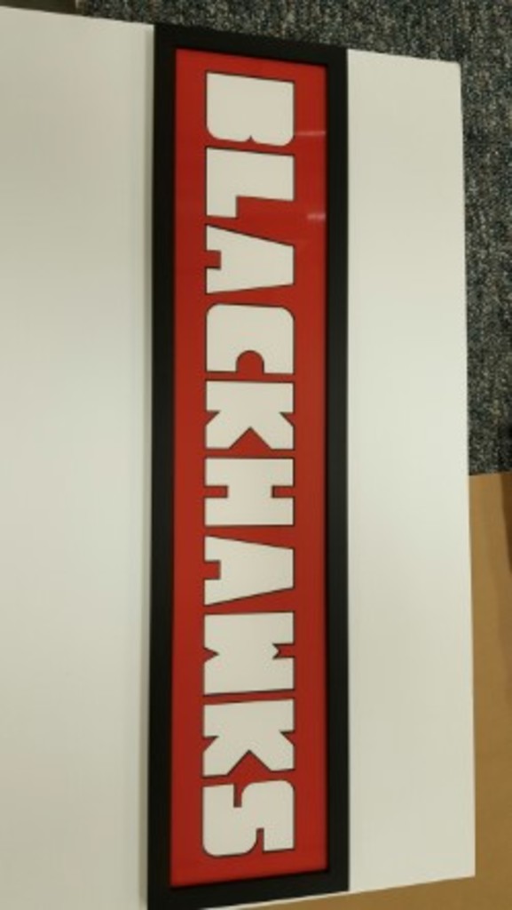 Chicago Blackhawks framed photo mat where you can insert your favorite photos. Black wood frame 30 x 6 features a red acid free mat with a black core professionally cut on a computerized mat cutter.
