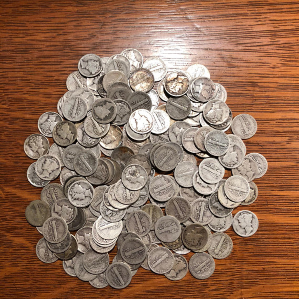 250 grams of silver weight in these 90% silver coins by the United States Mint. Great for getting a coin collection started or weighting down a safe. Each lot contains 100 coins randomly taken from our collection. Most are in good condition and have good readable dates, some may be worn.